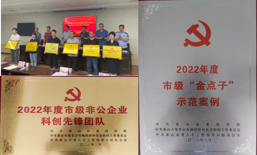 區(qū)委領(lǐng)導(dǎo)為獲評2022年度省、市級先進(jìn)典型授牌。我公司榮獲“2022年度市級非公企業(yè)科創(chuàng)先鋒團(tuán)隊(duì)”和“2022年度市級“金點(diǎn)子”示范案例”榮譽(yù)稱號。