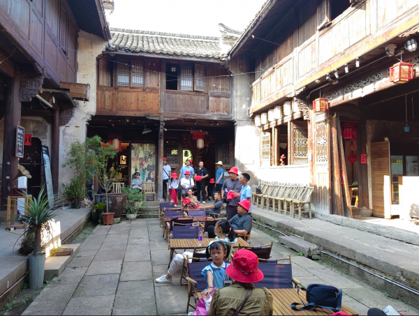 中午,我們來到旅程第四站:嵩溪村八字臺門用餐,嵩溪村也是浦江的一個美麗的古村落,2019年12月25日,入選我國*批國家森林鄉(xiāng)村名單。古色古香的環(huán)境讓大家食欲大增,一道道特色美食讓人回味無窮。